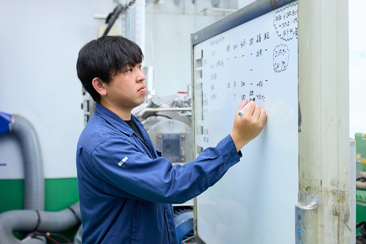 昔から機械設計という仕事に憧れがありました。就職活動中、会社を見学した際、設計事務所と工場が同じ敷地内にあり、設計から製造まで一貫してみることができる環境に魅力を感じました。また、学生時代に電気電子を専攻していたこともあり、学んだ知識を活かせると思い入社を決めました。